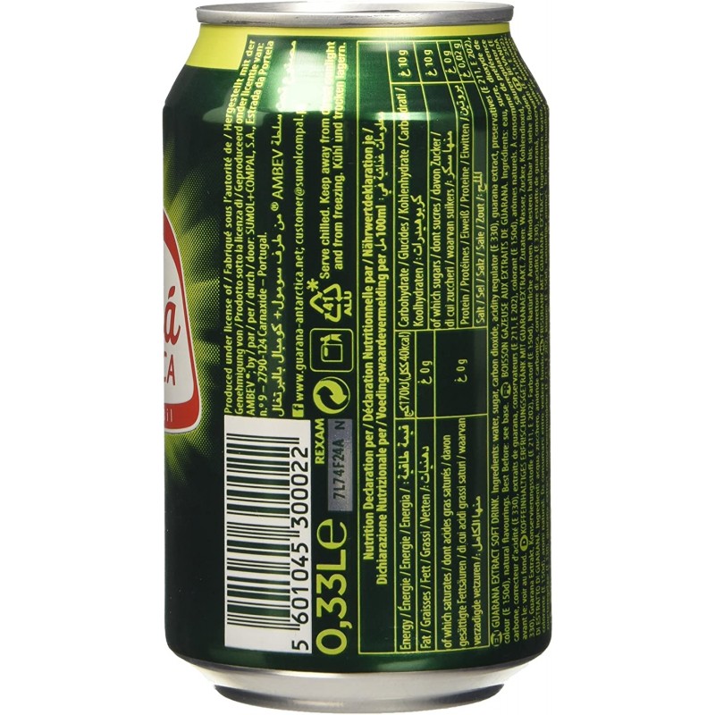 Guaranà Antarctica è la bevanda analcolica più famosa in Brasile. Parliamo di un soft drink leggermente frizzante e rinfrescante realizzato con le bacche di Guaranà che contengono un quantitativo di caffeina maggiore dei chicchi di caffè. Creata in Brasile nel 1921 dalla Companhia Antarctica Paulista, è fresca e dissetante, oltre che energizzante. Si caratterizza per un inimitabile gusto tropicale. Un delizioso energy soft drink dal sapore indimenticabile, usala da sola o per i tuoi cocktail.