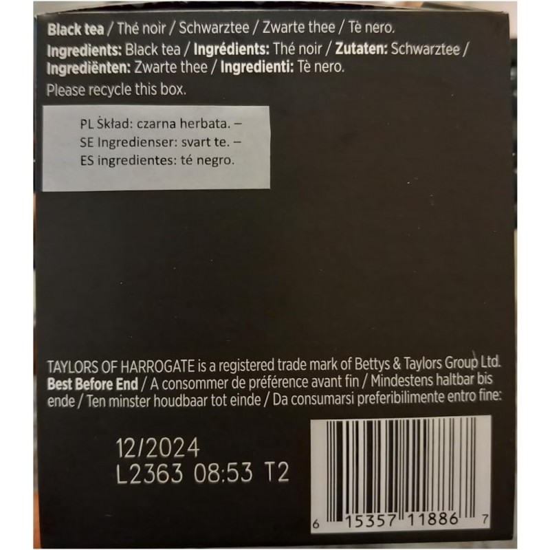 Tè Nero English Breakfast 2,5 g in 20 bustine Taylors of Harrogate. Provalo subito. Consegne rapide in tutta Italia.