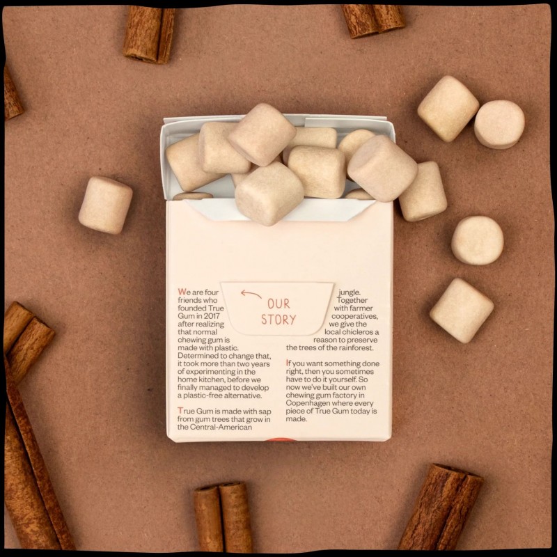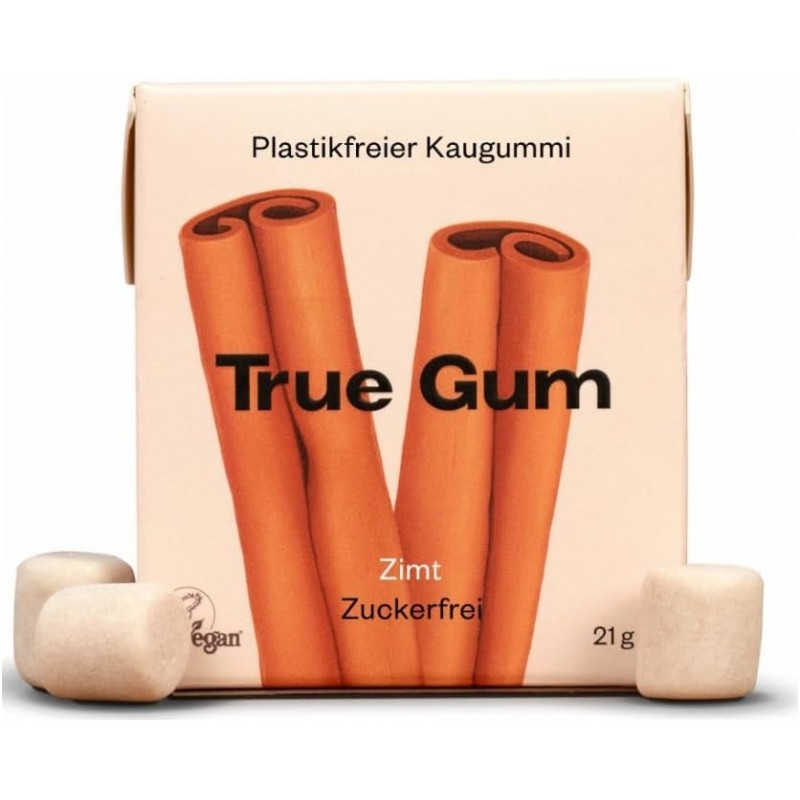 Chewingums alla cannella True Gum 21 g senza zucchero, senza plastica e gusto speziato intenso. Pratiche da portare sempre con te. Acquistale ora.