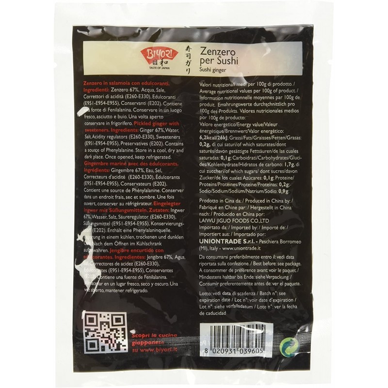 Lo Zenzero in Salamoia per Sushi Biyori è lo zenzero in linguette ideale per ripulire il palato tra una portata e l'altra di sushi.