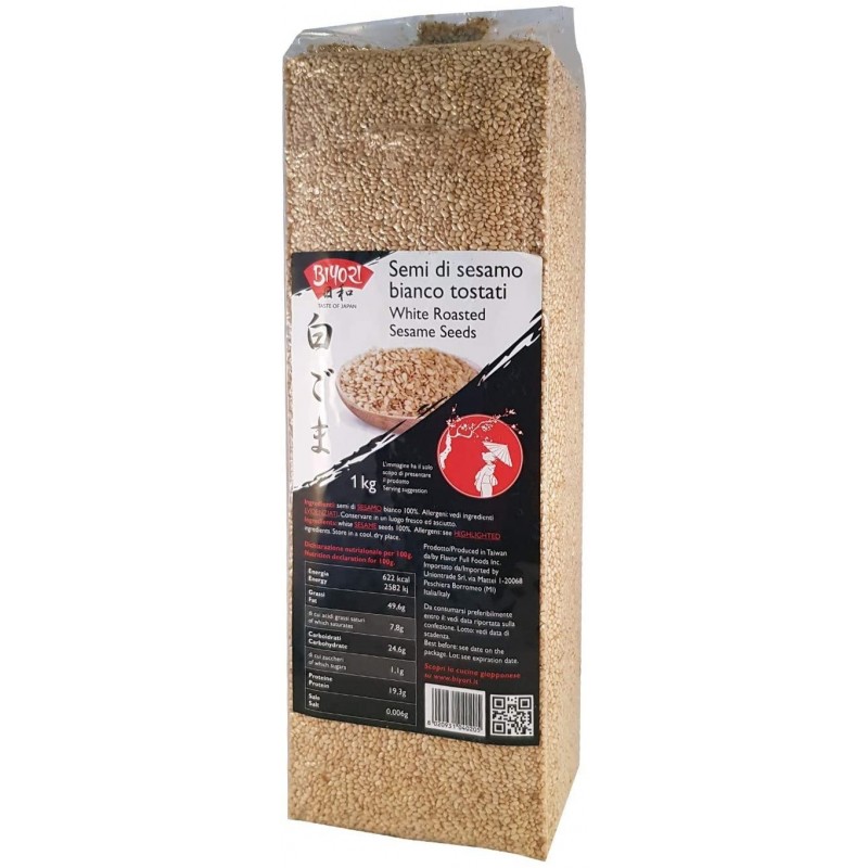 I Semi di Sesamo Bianco Tostati Biyori vengono utilizzati nella cucina giapponese per decorare il riso in diversi tipi di sushi. 1kg.