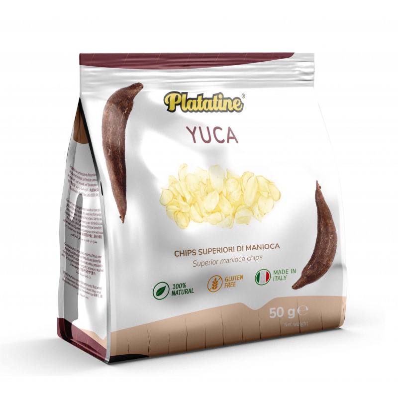 L'incontro tra il rosa del Sale dell'Himalaya e la dolcezza della manioca, per questa ricetta delicata di Patatine di Yuca Plattaine. Le Yuca sono chips di Manioca, tubero protagonista di molti piatti nella tradizione culinaria dei paesi del Sud America. I tuoi aperitivi con un prodotto italiano al 100%, privo di glutine e trattato con solo olio d'oliva, ricche inoltre di vitamine A, C e ma anche di ferro, potassio e calcio, vantano proprietà antiossidanti. Dal colore bianco brillante con bordini marroni, hanno gusto delicato e leggero che unito alla loro extra-croccantezza le rendono perfette come snack aperitivo o in abbinamento a sapori forti.